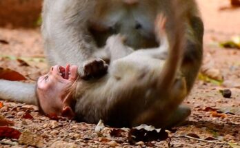 Her mother hovered nearby, watching, torn between instinct and exhaustion. Perhaps she believed the lesson would make Tia stronger, or perhaps stress clouded her judgment. Still, every cry made the mother flinch. Other monkeys paused to look, sensing the tension in the air. The forest, usually alive with gentle sounds, seemed to hold its breath.