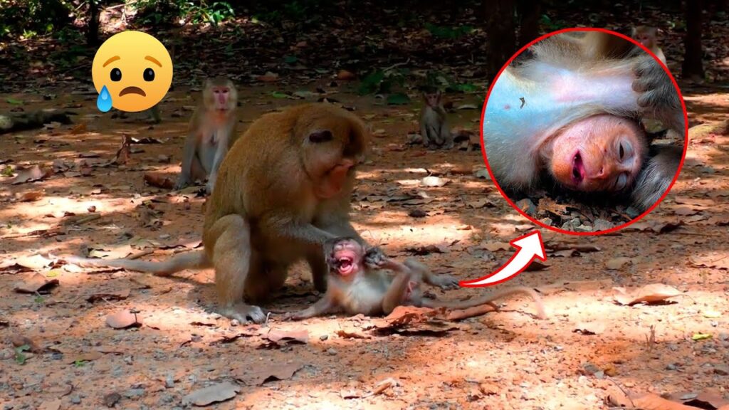 Life in a monkey troop is never simple, especially for the smallest and most vulnerable babies. Today’s scene was truly heartbreaking and confusing. A big monkey, clearly in a bad mood, suddenly turned its frustration toward a tiny little monkey who had done absolutely nothing wrong. The poor baby, innocent and playful, was only trying to explore and stay close to safety, but instead of being encouraged, he was punished harshly.