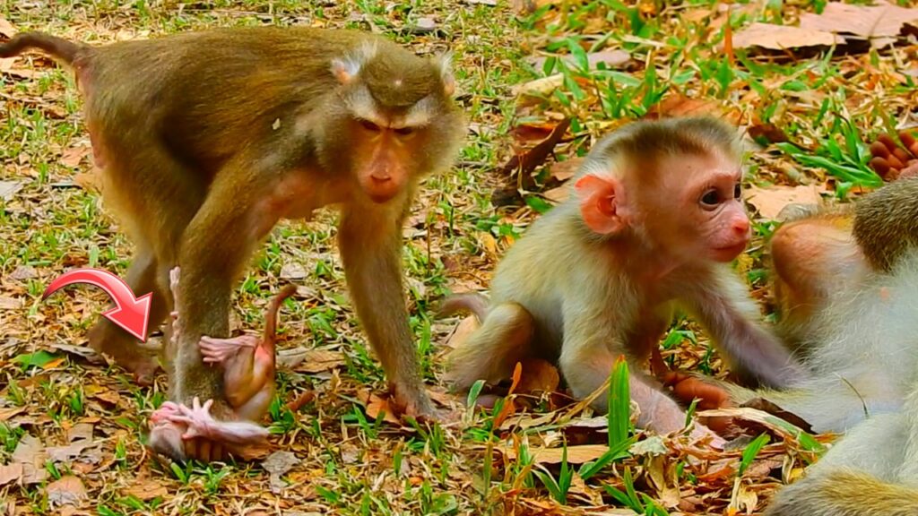 Libby sat nearby, unmoved, her eyes stern as if trying to teach a harsh lesson too early for such a fragile baby. Levy crawled closer, his small hands shaking, but she stepped back again. The rejection hurt more than hunger. His energy faded, and he slowly collapsed onto the ground, whimpering softly.