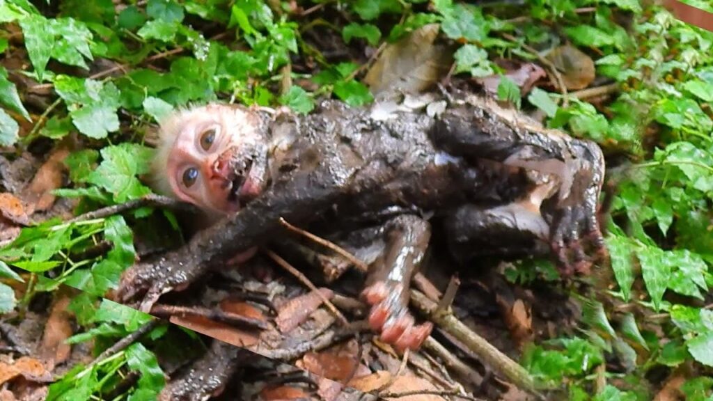 In the quiet corner of a dusty village, a small baby monkey sat trembling on the ground, its soft cries barely heard above the noise of the busy world around it. Its tiny body looked weak and fragile, eyes filled with fear and confusion. It had lost its mother, and now it was alone, struggling to survive in a place that felt too big and too dangerous.