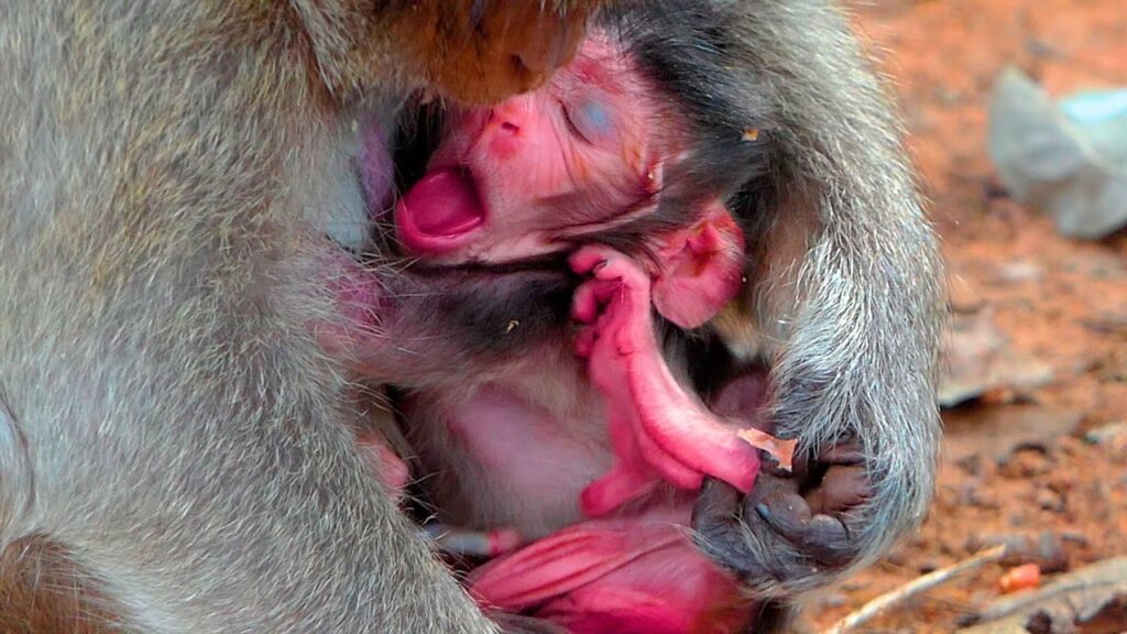 In the heart of the forest, a tiny baby monkey was seen letting out soft, pitiful cries that echoed through the trees. The little one’s fragile voice seemed to tremble, as if calling for comfort without fully understanding the reason behind its own sadness. It was not hunger, nor was it fear, but rather the natural vulnerability of a newborn who still struggles to adjust to the big, unfamiliar world around it.