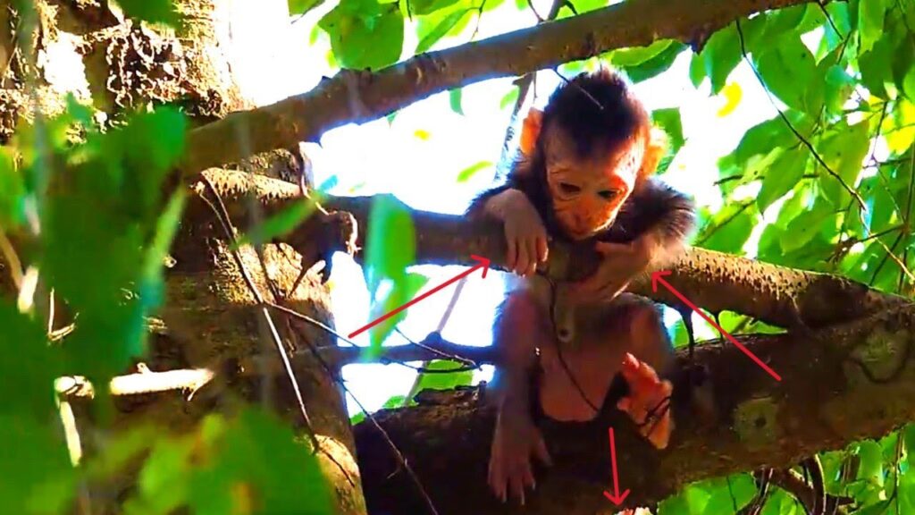 The forest was filled with the gentle rustling of leaves, yet high above, on the fragile branches of a towering tree, a tiny baby was left alone. The little one clung nervously to the bark, his wide eyes searching desperately for comfort. Viewers who witnessed this shocking scene could hardly believe their eyes—why would a mother leave her fragile baby in such a risky place?