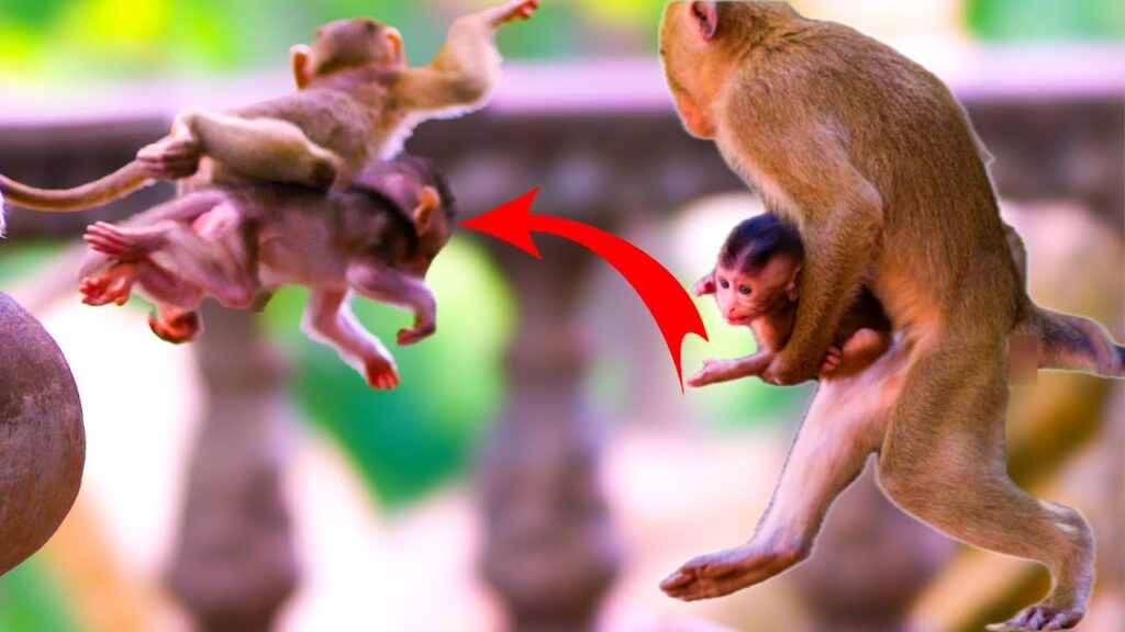 The peaceful afternoon in the troop’s playground turned into pure chaos in seconds. Baby Bely was happily playing with her tiny friends near the old stone wall, giggling and chasing each other in the warm sunlight. But suddenly, Jonas—the mischievous, older male known for his rough play—appeared from the shadows. His eyes locked on the little ones, and the air was instantly tense.