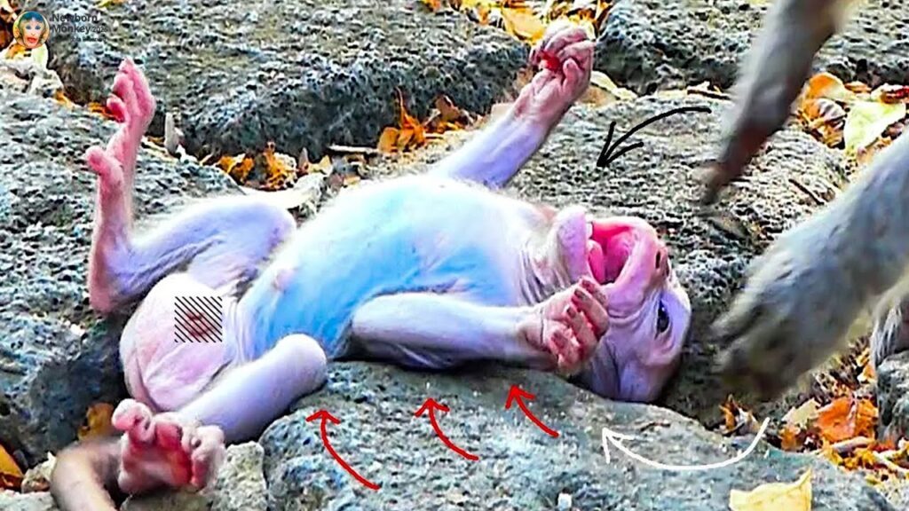 But moments later, his cheerful chirps turned into frightened squeaks. The baby monkey was stuck! His small body was wedged tightly, and no matter how hard he wiggled, he couldn’t free himself. Panic began to set in. He looked around helplessly and then cried out, calling desperately for his mother. His tiny hands reached out as he whimpered in distress.
