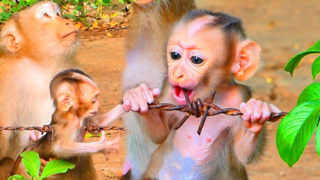 Curiosity is often the most charming quality in little ones, but sometimes it brings unexpected trouble. That was the case for a tiny baby monkey who, while exploring his surroundings, stumbled upon something new—a tall metal fence. The fence looked shiny and strange, sparking the baby’s curiosity instantly. With his big eyes wide open, he began poking around, touching the cool surface with his tiny hands, and even trying to peek through the narrow spaces.