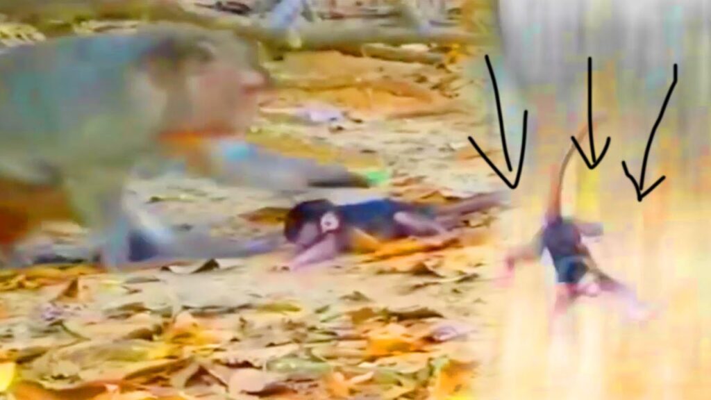 What a heartbreaking scene it was when the little baby monkey suddenly slipped from his mother’s arms. The tiny one, still so weak and needing warmth, had been clinging to his mother’s belly, trusting her completely. But the mother, distracted and careless for just a moment, didn’t hold him tightly enough. In that instant, the poor baby lost his grip and dropped to the hard ground with a small, painful cry that echoed through the forest.