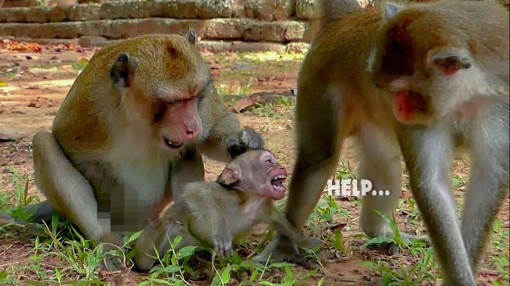 Poor little Anissa found herself in a heartbreaking moment today. King Aron, the strong and dominant male monkey, had taken a deep interest in her, refusing to let her go. At just a few weeks old, Anissa is still completely dependent on her mother, but Aron clung to her tightly, keeping her away from the comfort of her mama’s arms.