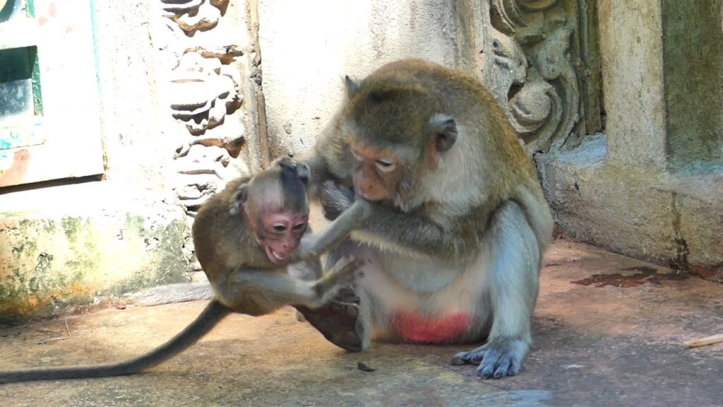 Later, the mother monkey came back and softly groomed him, reassuring her love despite the discipline. The baby leaned in, quietly accepting the moment of bonding and forgiveness. Though the lesson had made him feel s.a.d, it also helped him grow.