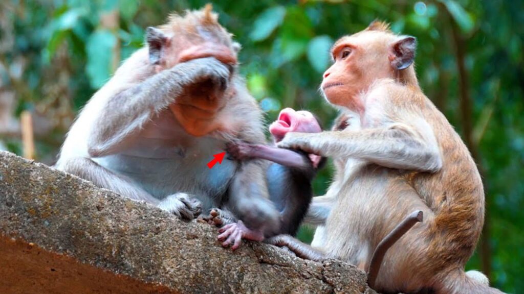 Brighton is feared in the troop. He bullies weaker monkeys, steals food, and now, heartlessly kidnapped a newborn. It wasn’t about care — he used Jester like a toy, tossing him, holding him by the neck, and dragging him around roughly. Poor Jester cried nonstop, his tiny voice calling out for his mom, but no help came. His body shivered in fear, and his little hands reached out to nowhere.
