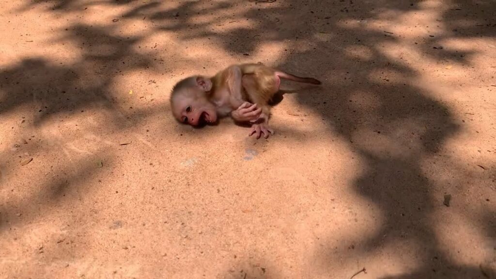What a scene! Little baby monkey Bella was just trying to enjoy a calm morning, playing with a stick she found near the tree roots. Her fluffy tail wagged slightly with excitement as she tumbled and rolled in the dust, having the time of her tiny life. But in the background… the storm was brewing.