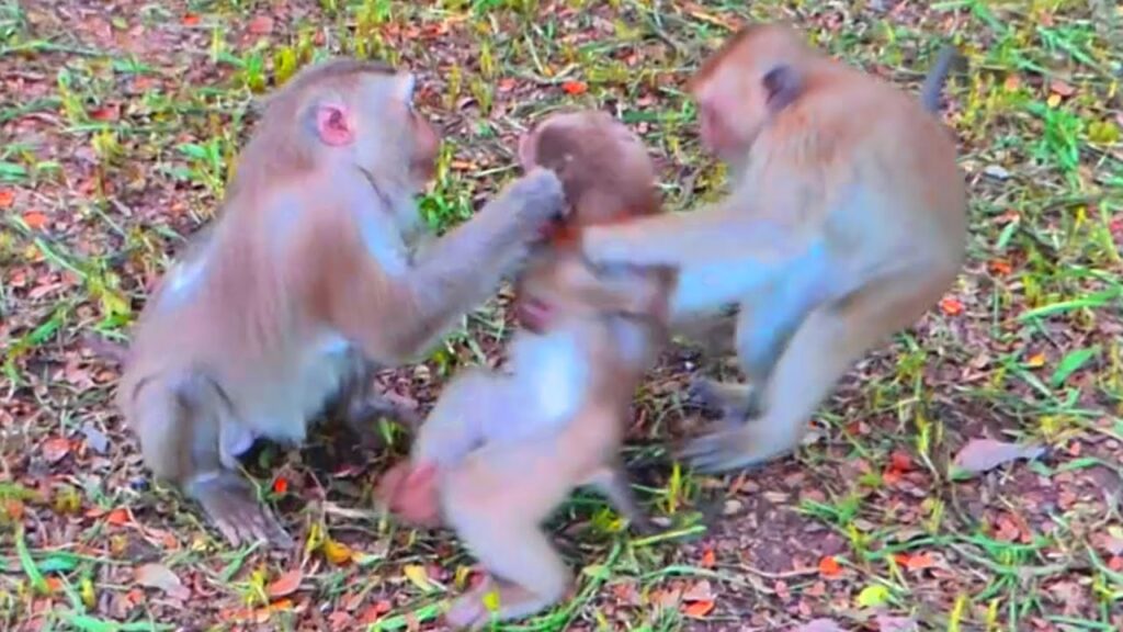 In the usually playful and heartwarming world of the monkey troop, a shocking scene unfolded that left everyone stunned. Mommy Rainbow, known for her bright personality and nurturing spirit, suddenly showed a rare side of her temper. Little Jovi, the curious and energetic baby monkey, had been clinging close to her, tugging on her fur and trying to climb all over her back. At first, Mommy Rainbow tolerated his antics, but as his playful energy grew more demanding, her patience began to wear thin.