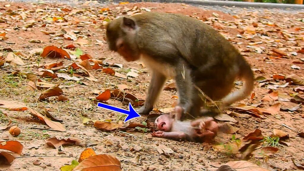 A heartbreaking moment unfolded today as a tiny, pitifully lovely baby monkey cried softly in pain, all because his strong and determined mommy believed in tough training. The baby, still so small and innocent, wanted nothing more than warmth and gentle care—but his mommy had a different lesson in mind.