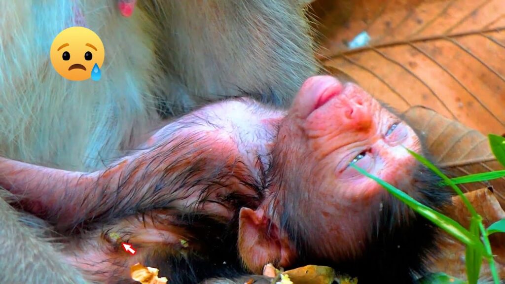 The little baby monkey lies weakly in his mother’s arms, his tiny body showing signs of exhaustion. His eyes look heavy, and his movements are slow, as if every effort drains what little strength he has left. Sadly, his mother has not been feeding him enough milk, and the poor baby is suffering because of it. Instead of bouncing with playful energy like other monkeys his age, he clings quietly, too tired even to cry out loudly.