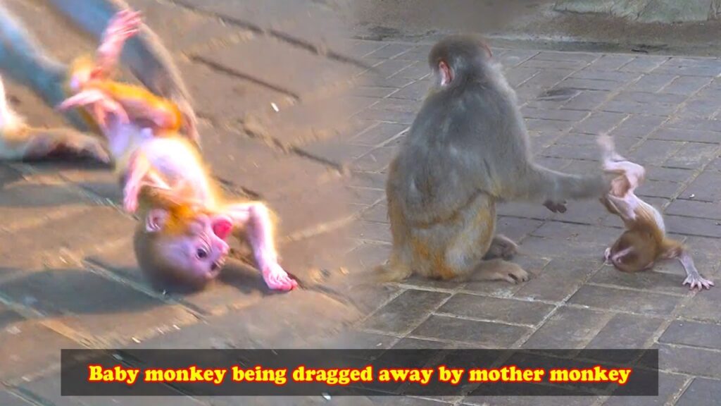 In the quiet of the early morning, a tiny baby monkey’s cries pierced the forest air. The sound was heartbreaking—raw, loud, and full of confusion. His small body trembled as he clung weakly to a tree branch, eyes wide with fear and sadness. His mother, a strong and experienced female, stood nearby, focused and stern. She wasn’t ignoring him—she was training him. But the lesson was harsh, and the baby was struggling to understand why the warmth and comfort he once knew had changed so suddenly.