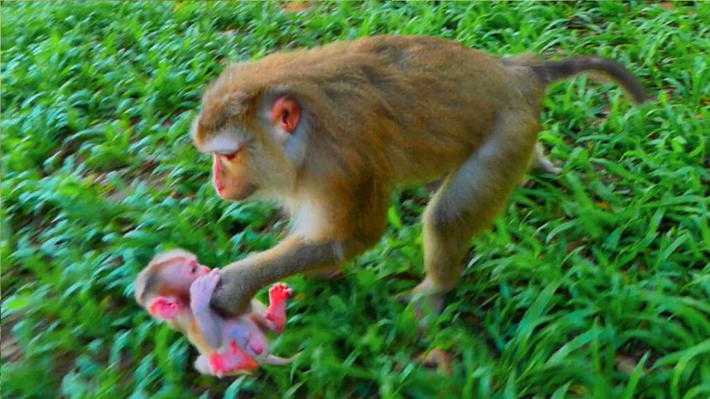 The peaceful afternoon in the forest was suddenly shattered by a frightening scene. Little Lynx, still so young and fragile, was exploring close to his mother, Luna. His tiny paws stepped cautiously on the soft grass, his curious eyes glancing around. But danger was lurking nearby. Monkey Brady, known for his aggressive and unpredictable behavior, had spotted the cub.