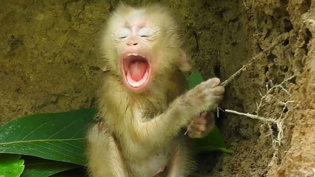 In the quiet corner of the forest, little Ongo, the baby monkey, let out a cry that echoed through the trees. His tiny body shook with sobs, and his face was filled with fear and sadness. Perhaps he had stumbled while trying to climb, or maybe he felt lonely for just a moment, but to him, the world seemed too big and overwhelming. His cries grew louder and more desperate, each sound tugging at the heart of his mother who was never far away.