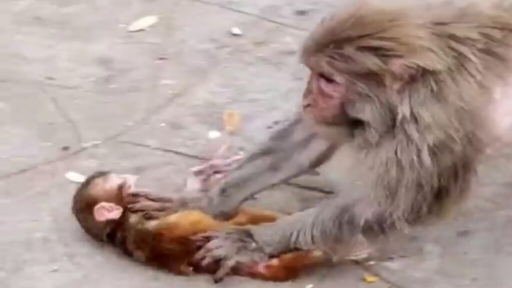 The scene reminds us that not every display of motherly care appears tender. Just like humans, animals also face challenges in parenting. Watching the baby endure such hardship stirs deep sympathy in our hearts. We can only hope that after this moment, the little monkey found the comfort, warmth, and gentle love that every infant deserves.