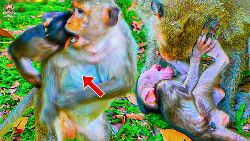 In the warm afternoon sun, the little baby monkey tried once again to crawl close to his mother. His tiny hands trembled as he reached for her, his soft eyes filled with hope and hunger. He had not nursed for a while, and his small body was growing weaker. The mother sat quietly on a rock, her eyes half-closed, looking tired and uninterested in her little one’s attempts. She didn’t move away, but she didn’t respond either — her body seemed heavy with exhaustion.