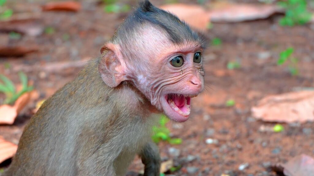 In the quiet corner of the forest, a poor tiny monkey sat with eyes full of hope and a little tummy growling with hunger. The baby’s small hands clutched at the ground as he watched the older monkeys enjoying their meal. The smell of ripe fruit and fresh leaves filled the air, making the little one’s desire grow even stronger. He slowly approached a big monkey, his eyes shining with innocence and need, softly reaching out as if to say, “Please share just a little.”