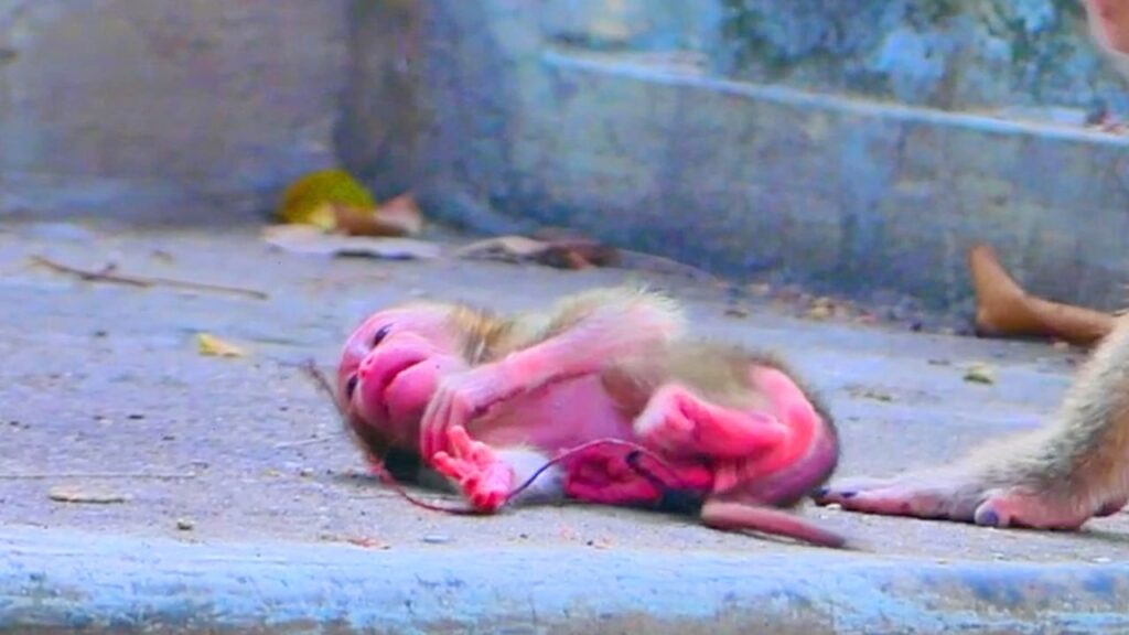 In the quiet corner of the forest, a tiny newborn monkey named BB struggled to understand the world around him. His small body trembled as he tried to take his very first steps, each movement slow and uncertain. The ground beneath him felt cold and unfamiliar, and his fragile legs barely had the strength to support his weight.