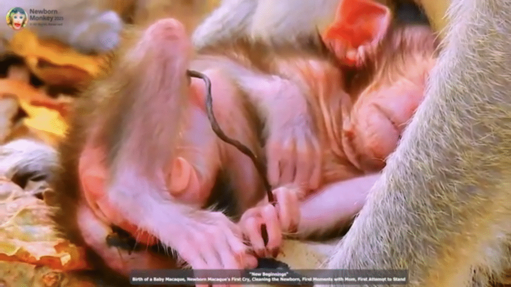 The first moments of life are always fragile, tender, and filled with emotions, and this is especially true for newborn baby monkeys. Right after birth, these tiny creatures look incredibly delicate, their bodies still wet from the delivery, their eyes often closed or only slightly open. Their limbs appear so small and weak, yet within them lies the instinct to cling tightly to their mother. This natural bond forms instantly, as the baby monkey searches for warmth, protection, and the comfort of its mother’s heartbeat.