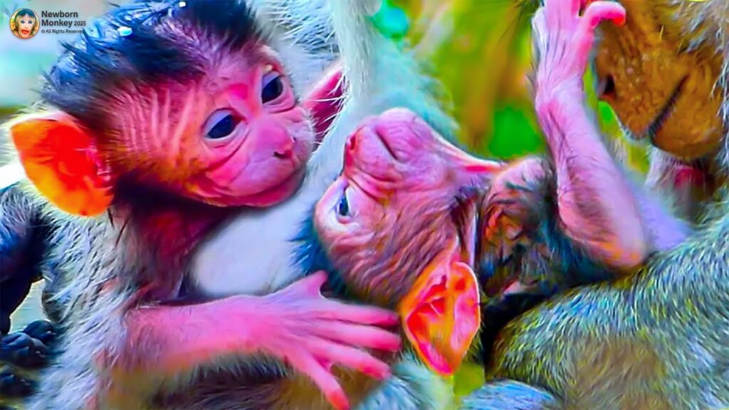 It was a tender morning in the troop’s clearing, the sunlight spilling gently over the grass. Young mom Dakota sat proudly, her bright eyes fixed on her tiny newborn. Just days old, the little one still wobbled with each movement, but something special was about to happen — the very first attempt at walking.