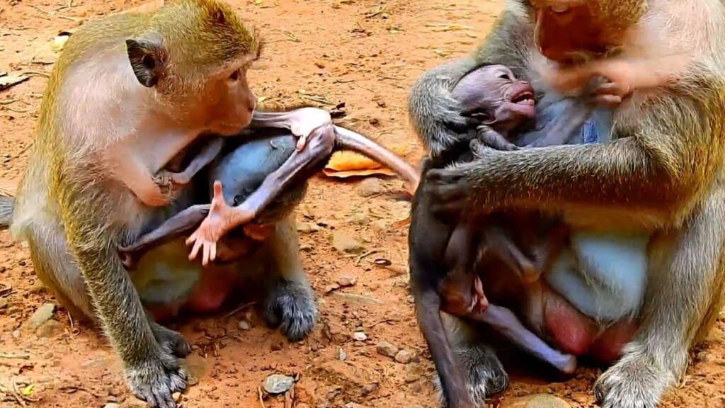 Real Action Monkeys Wildlife Poor Mama Trying Blocked Her Baby Milk, Macaque Baby Crying
