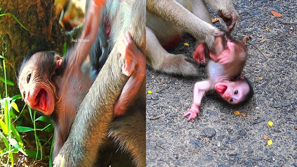Tiny baby monkey Maxwell’s innocent eyes searched desperately for comfort, but what he found instead was rejection. His small, fragile body trembled as he reached out to his mother, hoping for the warmth of milk and love. But Mama monkey, overwhelmed or perhaps distracted, turned away, leaving baby Maxwell confused and hungry.