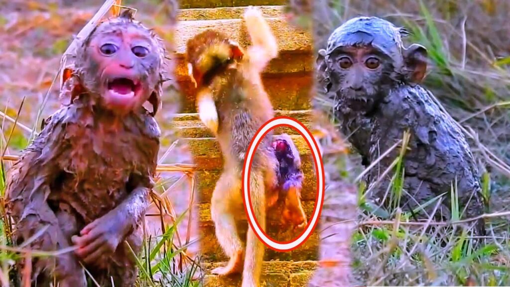 In the quiet corner of the jungle, a tiny baby monkey sat all alone, his small body trembling as the wind brushed against his fragile fur. His mother, once his whole world, had disappeared into the trees, leaving him behind with no explanation. The baby’s eyes were wide with confusion, glistening with tears he didn’t understand how to stop. He was just too young to survive alone, and his tiny cries echoed through the forest — heartbreaking sounds of deep sadness and confusion.