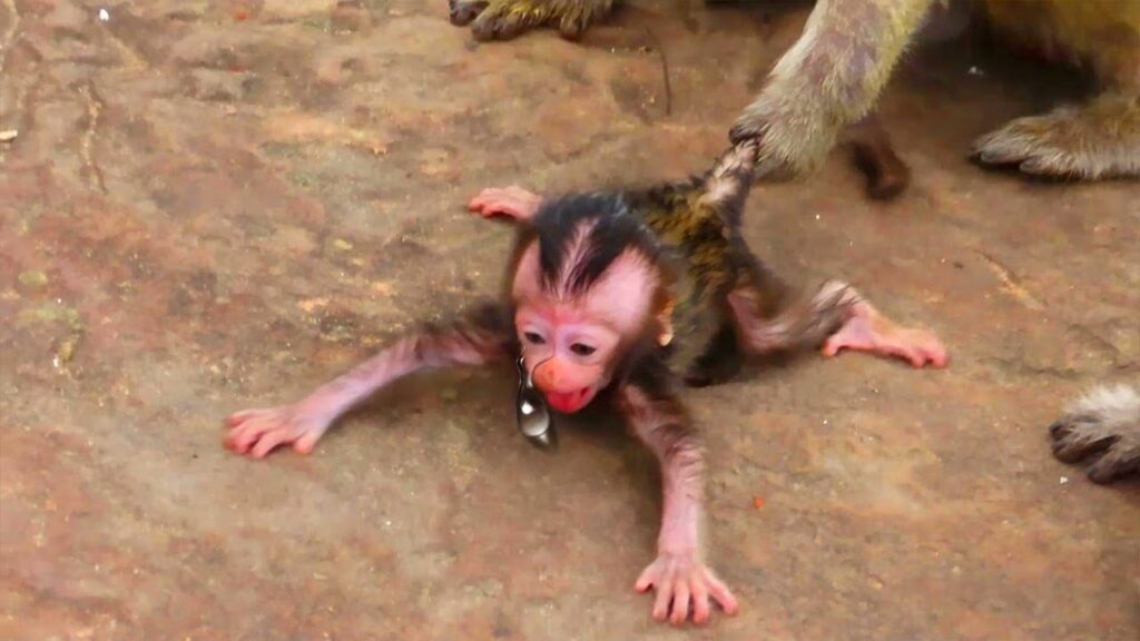 The day-to-day scenes revealed how difficult life can be for a baby born into the wild. While adult monkeys fought for food and space, the little one cried softly, reaching out with trembling hands. Each small fall, each loud cry, felt like a prayer sent into the sky. Viewers could not help but whisper, “God help this baby,” hoping that kindness would find him before danger did.