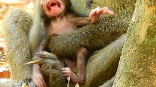Seriously, today’s real-life broadcast broke many hearts as viewers watched a poor little baby monkey struggling to survive in a harsh world that showed no mercy. From the first moment the camera followed him, his tiny body clung desperately to his mother, his eyes wide with fear and confusion. He did not understand why hunger came so often, or why comfort was sometimes replaced with rejection. All he knew was that he needed warmth, milk, and safety.