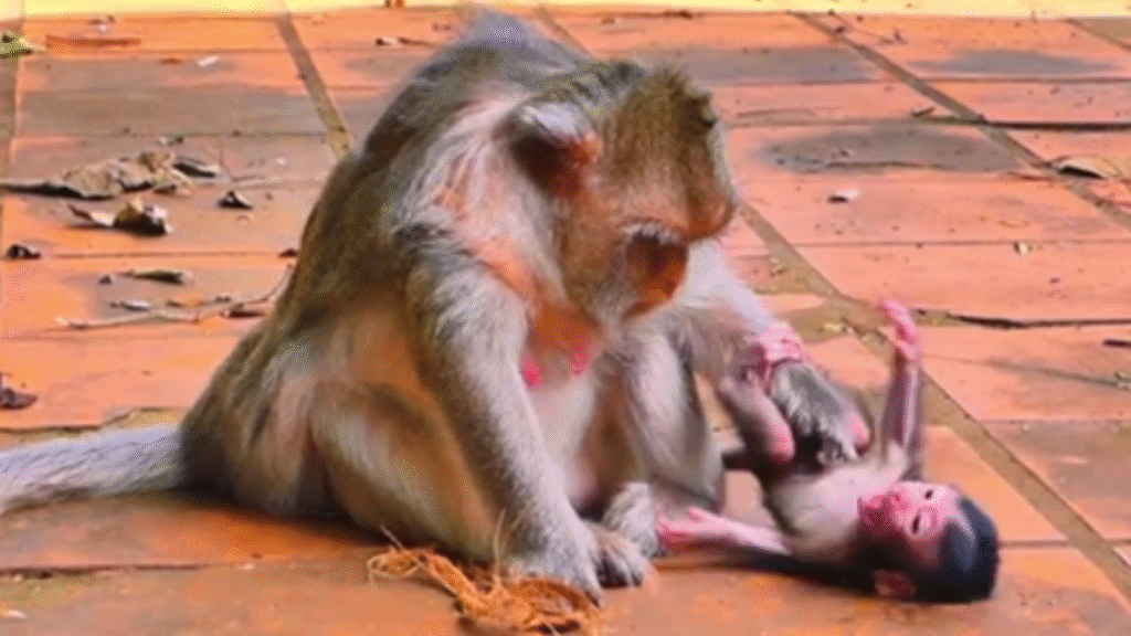 For a newborn, milk is not just food—it is life itself. Without it, the baby lacks the strength to stay warm, to grow, and to feel safe in its mother’s care. The tiny monkey’s pitiful cries painted a picture of innocence and vulnerability, stirring deep emotions in all who witnessed the moment. Its big, watery eyes seemed to ask, “Why doesn’t my mommy want me?”