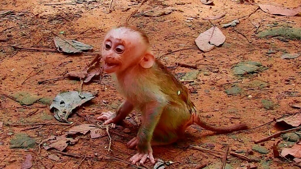 The mother monkey sat just a few feet away but showed no sign of care. She looked away, distracted or possibly overwhelmed, leaving her baby to struggle alone. The rejection was painful to witness. The baby monkey, likely only a few days old, could barely hold his head up, yet he continued to reach out, crawling toward her in hope. His small hands tried to grasp her fur, but she brushed him off coldly.