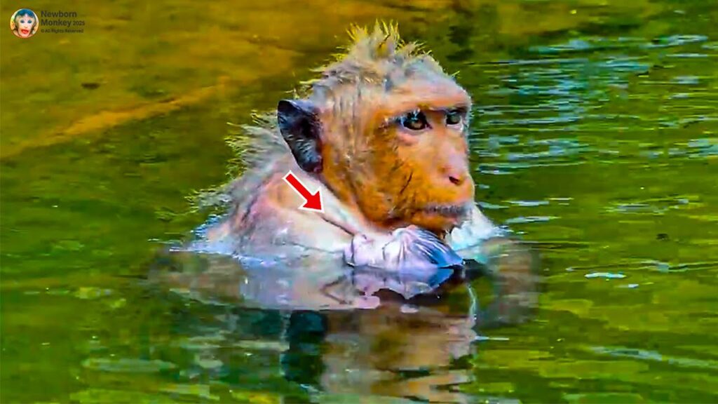 In the quiet corner of the jungle, a fragile, skinny baby monkey lies curled on the ground, struggling to catch his breath. His tiny chest rises and falls rapidly, each gasp weaker than the last. His eyes, wide and glassy, search helplessly for comfort. The group has moved ahead, but this poor baby can’t keep up. His body is too thin, his energy too low — and his lungs seem to be failing him.