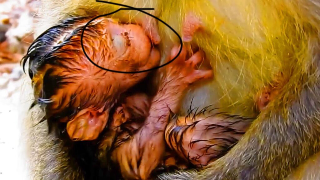In the quiet seconds after birth, the tiny newborn monkey BB entered the world with eyes still wet from life’s first breath. His body was fragile, his fur thin and trembling, yet there was something extraordinary shining deep within his eyes. Though only minutes old, BB already carried an ancient instinct—an unspoken knowledge passed down through generations. He lifted his small head with effort, searching, sensing, and longing for the warmth he had known even before opening his eyes.