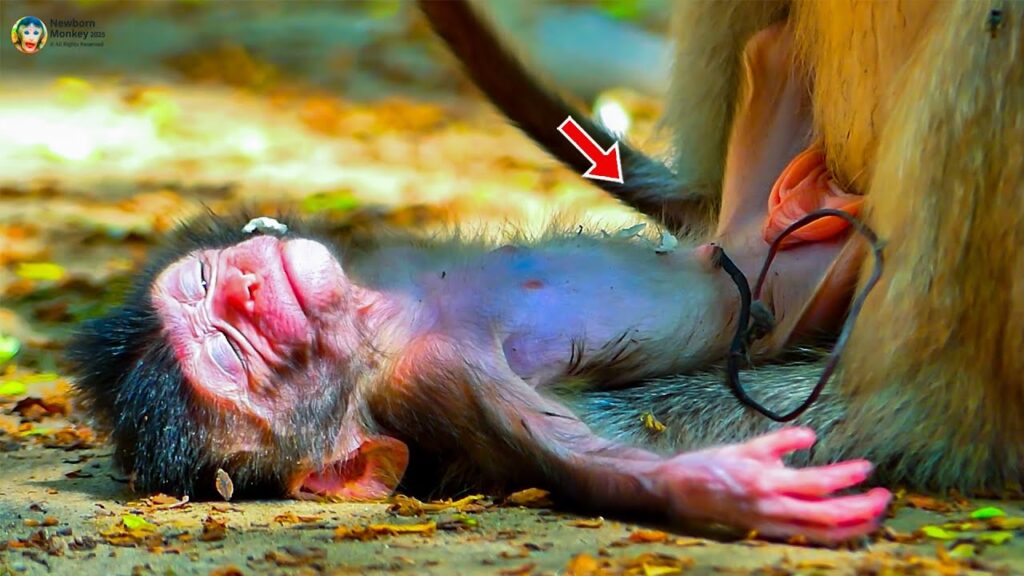 After several minutes of tender cradling, the mother slowly shifts her position. She glances around, making sure the area is safe, her sharp eyes scanning for any threats. Satisfied, she gently lowers her newborn to the soft, leaf-covered ground. It’s a rare sight—monkey mothers almost never let their babies out of their arms so soon. But this is not abandonment. This is trust, and perhaps a chance for her to rest her tired arms after the exhausting birth.