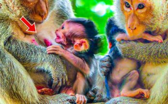 In the quiet corner of the forest, a fragile life had just begun. Little Brindy, only just born, blinked her soft eyes open to a world both beautiful and cruel. Her tiny body trembled as she tried to nestle close to her mother, searching for warmth, comfort, and—most importantly—milk. But as she pressed against her mother’s chest, there was nothing. No sweet nourishment came, no relief for her hunger, only silence and disappointment.
