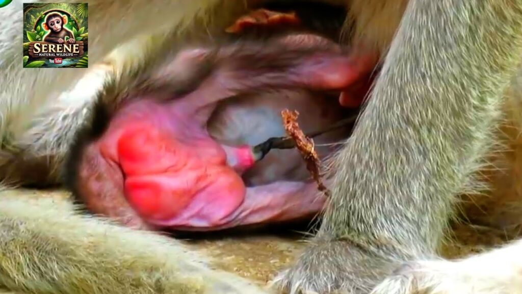 In the heart of the forest, a tiny newborn baby monkey has just begun discovering the world around him. His fur is still soft and fluffy, and his eyes shine with innocence and curiosity. Though he is only a few days old, this little one is already showing a lively spirit. With every small movement, he tries to stretch his delicate arms and legs, as if practicing the skills he will need to climb, jump, and play like the older monkeys in his troop.