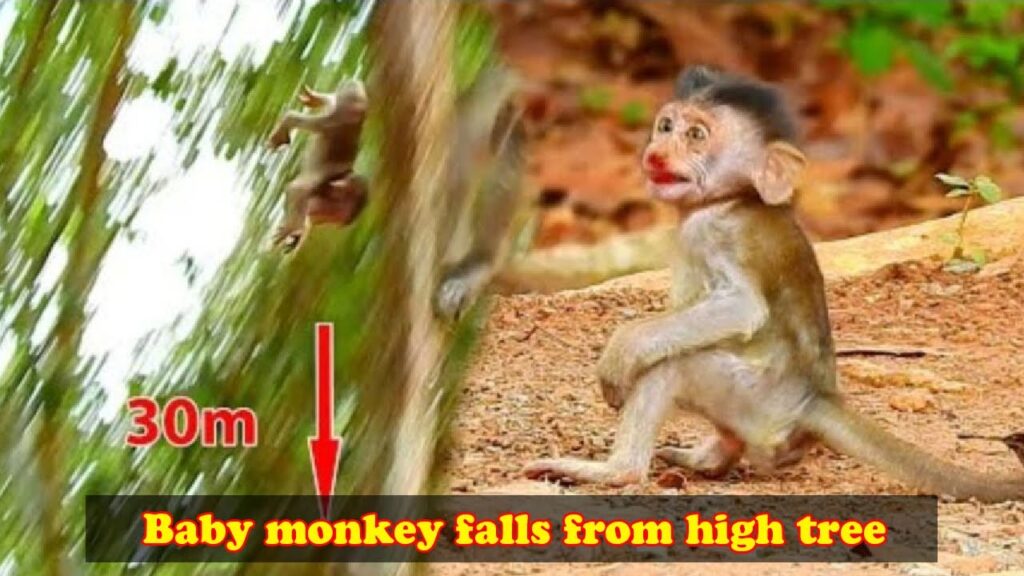 The baby monkey accidentally fell from a tall tree, so pitiful.