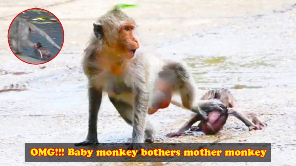 At first, the mother tried to move away, gently pushing the baby aside. But the little one wouldn’t stop. It squeaked and cried, reaching for her again, thinking it was all just play. Finally, overwhelmed with frustration and exhaustion, the mother monkey snapped. She turned and hit the baby roughly, her anger bursting out in a moment of loss. The baby shrieked in pain and confusion, tumbling backward, not understanding why its loving mother suddenly turned so harsh.