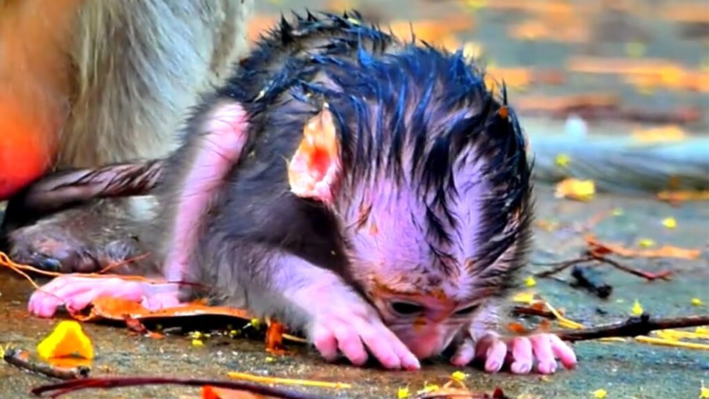 Moments like these remind us of the beauty of life in its earliest stages. The baby monkey, lying so cutely on the ground, was not just resting—it was beginning its journey of growth, surrounded by love, protection, and the gentle rhythms of nature. Truly, such innocence is a treasure worth cherishing.