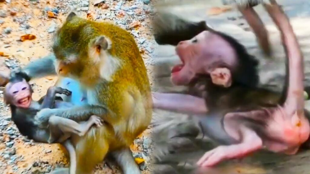 In the heart of the jungle, a little baby monkey clung tightly to his mother’s warm belly. His name was Tobi, a tiny, soft creature with bright eyes and a gentle cry. For months, he had found comfort and safety in nursing from his mother, but the time for weaning had finally come. His mother, wise and loving, knew it was time for Tobi to grow more independent.