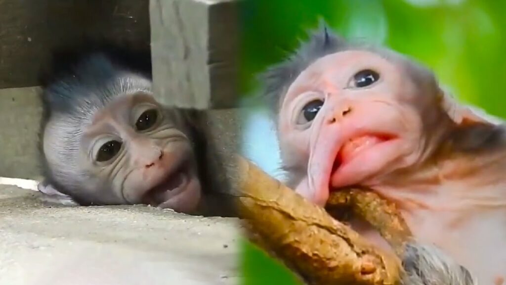 It was a heartbreaking moment deep in the forest when a tiny baby monkey found itself in serious trouble. While trying to climb after its mother, the baby slipped and got its fragile leg caught between two thick branches. The pain on the little one’s face was clear—its cries echoed through the jungle, full of fear and helplessness. The more it struggled, the tighter the branches seemed to hold on.