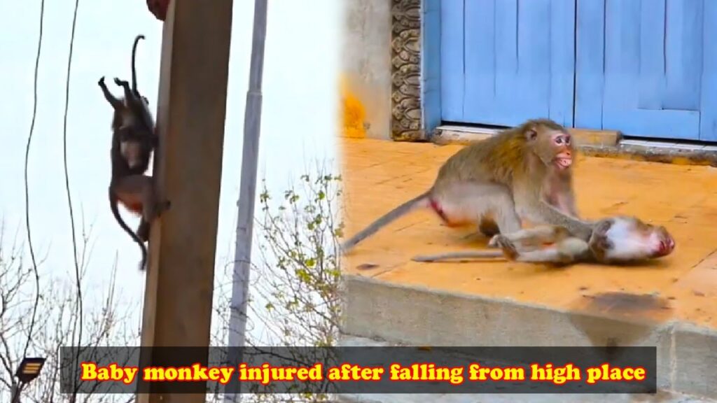 The little monkey unfortunately fell from a height and was seriously injured