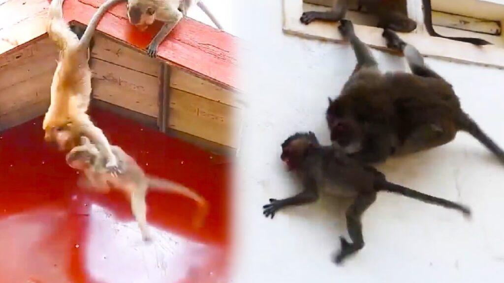 In a heartbreaking moment that stunned onlookers, a mother monkey was seen dropping her tiny baby from a high branch. The baby, clinging to her at first with innocent trust, was suddenly let go—with no warning, no care. The tiny infant tumbled through the air and landed harshly on the ground below. It was a scene too painful to witness without feeling deep sorrow.