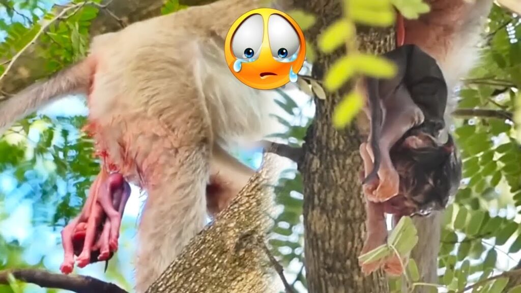 High in the quiet forest canopy, under leaves still wet with morning mist, a young mother monkey faced the most painful moment of her life. Her baby arrived too soon. Tiny, fragile, and trembling, the newborn clung weakly to her chest, its breath shallow and uncertain. The mother’s eyes, usually bright and alert, were filled with confusion and fear. She did not understand why her baby was so small, so silent, so different from the others she had seen before.