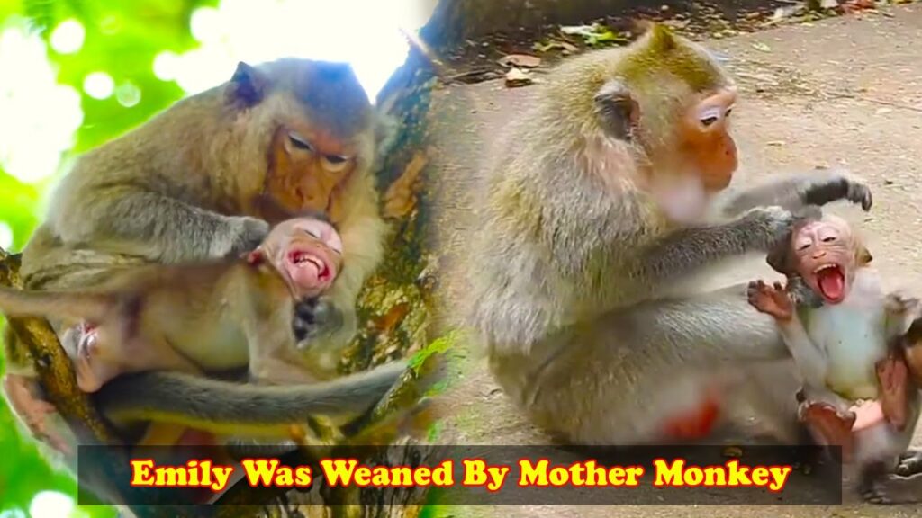 In the heart of the forest, a touching yet challenging moment unfolded between a mother monkey and her baby, Emily. Emily had always been deeply attached to her mother’s milk, finding both comfort and nourishment in those moments of closeness. But as she grew older, her mother understood that it was time to begin the natural process of weaning. With gentle determination, the mother started refusing Emily’s constant attempts to nurse, encouraging her instead to eat fruits and leaves nearby.