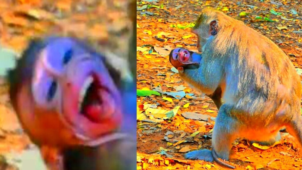 The baby monkey cried softly, calling for milk and reassurance. Instead of responding with calm care, the young mother moved away, leaving the baby feeling abandoned and scared. It was clear that she might not understand the responsibility of raising a newborn. In the wild, parenting is not always easy, and young mothers sometimes make mistakes while learning how to protect and guide their babies.