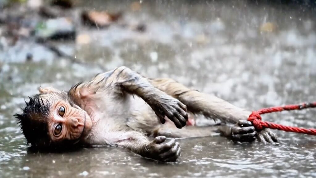 In the wild, every moment can be a fight for survival, especially for the youngest ones who are still learning about the world around them. Baby Rainbow, the tiny monkey, found himself in a heartbreaking situation when he got trapped between a pile of branches and stones. His little body trembled as he cried loudly, calling desperately for his mother. The sound was sharp and painful, echoing through the forest, pulling at the heartstrings of anyone who could hear it.