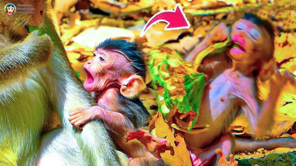 In the heart of the forest, a tiny baby monkey clings tightly to his mother, Anna. His little eyes sparkle with hope as he waits patiently, his small hands tugging gently at her fur. Hunger makes his soft cries echo, but in those sounds lies his simple wish: that his mother will care for him and provide the food he needs to grow strong.
